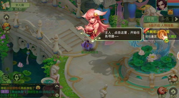 玩家接受的第一个任务便是女儿国国王安排的试炼任务了,为了证明自己能够拯救黎民百姓(妹子们),需要通过一系列的考核,在完成考核的过程中,玩家即可熟悉游戏操作、凑齐新手装备,并从铠甲诱惑白如心那里得到第一只助战宠物——小白。