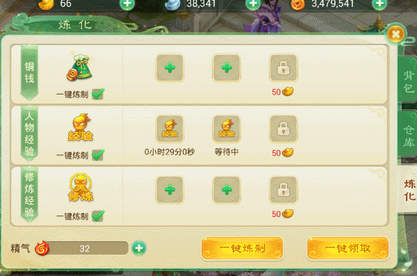 不仅如此,《西游女儿国》还为玩家提供了一键炼化的离线成长功能,可以把日常用不到的资源炼化掉,变成精气后修炼成经验、金钱。不论在哪里,金钱和等级都是很重要,小编决定奋起升级,早日拯救黎民苍生(各色小姐姐)于水火之中。